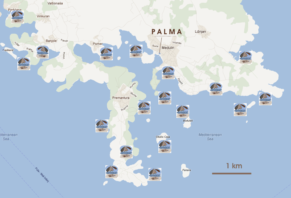 Accommodation In Medulin at merely south of Istrian peninsula, one of the most beautiful and most visiting tourist destinations of Istria and Croatia, well-known per Mediterranean climate, warm summers and mild winters, you can find Pension " PALMA", which is open all the year. We invite you to spend your vacations on the shores of unique Medulin bay. Medulin is one of the rare places on Adriatic coast which history of place for vacation, holiday and recuperation go till the antique Roman times, about what testify numerous remains of Roman patrician rural villas. Here, You can find troop of islands , beaches are belt widh pine-woods and crystal unchanged clear water what give special particularity to this country. Naturally , for an accommodation to your pleasure we furnished it following high standards. You can see that by visiting our page rooms, For the guest appreciating quality If you have decided about your holidays in Medulin or in Istria , explore the possibilities offered to you. You can spend your holidays in one of the most beatiful places at the Adriatic sea, but you can multiply the pleasure of your holidays by a right choice of places and a good information , answer to the following questions : What, how and where (beaches, events, food and specialities). Our main motto is quality and a satisfied guest, and on this pages you can find answers to some of these questions. For all the others you can easily contact us. For those who want more For those who want more there is a lot of additional offer . If you like boatride you might wish to rent a boat or yacht or partecipate in the excursion organized just for the our guests.